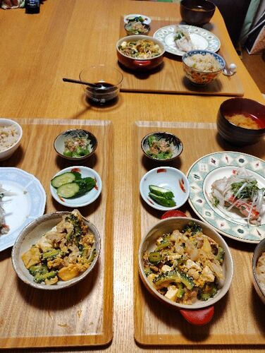 今日の夕飯は料理教室で習った魚の蒸し物です。 みょうがと大葉と長ねぎの薬味をのせたもの。とても美味しくできました。魚を蒸すのもホットクックを使ったので簡単に出来ました。 それとゴーヤチャンプルー。暑くなったのでゴーヤが食べたくなる季節です。 …