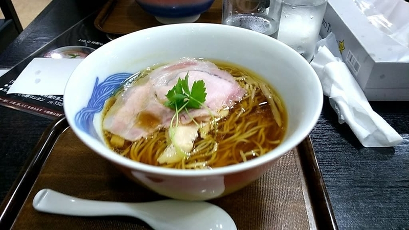 北海道のらぁ麺Lab Q。私は、醤油ラーメン。主人は地鶏塩ラーメンを注文。